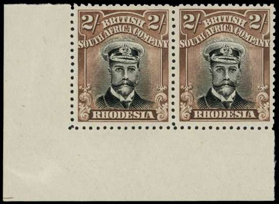 1922-4 2/- Head Die IIIB, perf 14, white paper. Lower left corner pair in grey-black and reddish brown, lightly hinged on selvedge, the stamps with full crackly o.g. SG 301, AH 17a