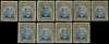 1913-7 2/6d Head Die II, perf 14. Nine mint examples in deep blue and grey, mostly fine, one with vignette shift to right, another with intermediate BILCO re-entry. Also a used example. SG 236, AH 2a