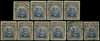 1913-7 2/6d Head Die II, perf 15. Eight mint examples in indigo and (paler) blackish brown, mainly fine; several with beta flaws, one with R1/6 flaw at top of cap, one with R5/9 scratch at top of cap. Also two used examples, one ex Strong. SG 249 group, AH 3b(B)
