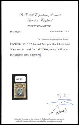 1913-7 2/6d Head Die II, perf 14. Mint example with large part o.g. in deep dull blue and drab, tiny purple owner's mark on reverse. Very rare. BPA Certificate (2012). SG 236a, AH 6