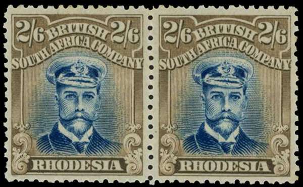 1918-21 2/6d Head Die IIIB, perf 14, toned paper. Large part o.g. horizontal pair in deep blue and bistre-brown, the right stamp unmounted. Fine. SG 274a, H 8 (C)