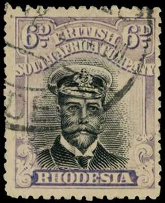 1917-20 6d Head Die IIIA, perf 14. Fine used example in black and slate-lilac, showing re-entry to letters of RHODESIA. SG 255g, AH 17
