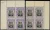 1922-4 6d Head Die IIIB, perf 14, white paper. Top left and top right corner blocks of four in (lighter) black and slate-purple, unmounted o.g. The top left corner block with slight splitting between selvedge and stamps. SG 295, AH 25