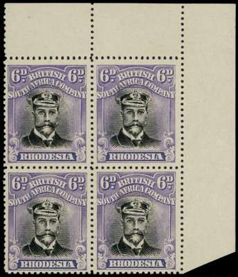 1923 6d Head Die IIIB, perf 15, white paper. Top right corner block of four, unmounted o.g., fine and fresh. SG 314, AH 27