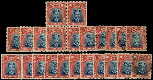 1918-21 10d Head Die IIIB, perf 14. Deep blue and red selection across the two Handbook shades with seventeen o.g. examples (several unmounted, one which has minor foxing with printer's mark), and five used. SG 270, AH 8(A&B)