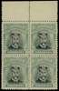 1918-21 1/- Head Die IIIB, perf 14, toned paper. Top marginal block of four in grey-black and (slightly greener than) deep blue-green, fine o.g. with the stamps unmounted. From Plate 8 State 2 with the proving R2/7 'chopsticks' flaw. Rare. SG 272 group, AH 5(B)