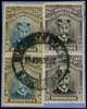 1918-21 2/6d Head Die IIIB, perf 14, toned paper. Vertical pair on piece with pair of 2ds, Variant B in steel-blue and greyish olive-brown. Slightly smudged Bulawayo Station CDS. SG 274a, AH 8(B)