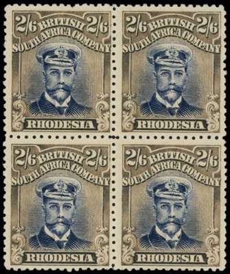 1922-4 2/6d Head Die IIIB, perf 14, white paper. Mint block of four, large part (crackly) o.g. or unmounted, in deep violet-blue and (light) sepia. SG 302, AH 12