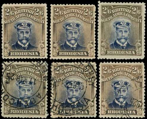1922-4 2/6d Head Die IIIB, perf 14, white paper. Deep violet-blue and (pale) sepia, the (A) variant (lighter shade) as per Handbook. Three mint examples, all fine o.g., one a 'jumbo'; and three used examples with 1925 dates, one with short perfs. Shades. SG 303, AH 14a(A)