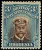 1913-7 3/- Head Die II, perf 14. Large part o.g. example from the chocolate and deep turquoise-blue group, R4/7 with printer's mark at top, handpainted retouch above cap and snowstorm flaw. SG 236b, AH 4(B)