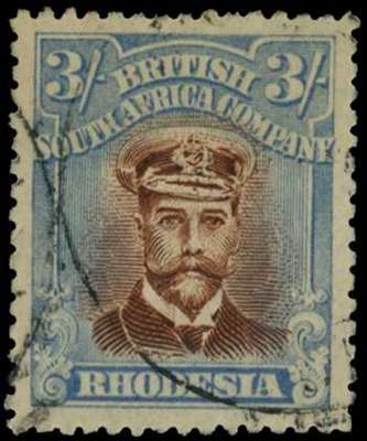 1918-21 3/- Head Die IIIB, perf 14, toned paper. Used example in light brown ('Mustard') and light blue. SG 274c, AH 7