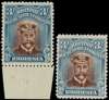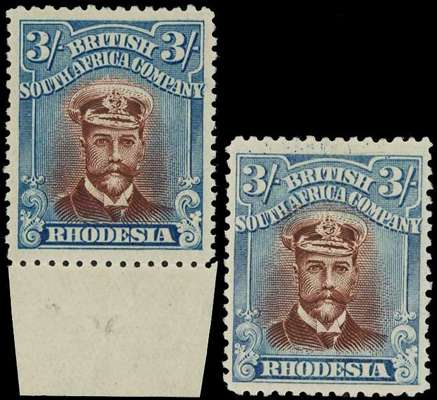 1922-4 3/- Head Die IIIB, perf 14, white paper. Two mint examples in reddish brown and greenish blue, shades, one large part o.g. and the other unmounted, fine. SG 304, AH 9