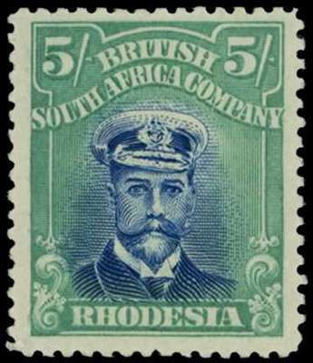 1922-4 5/- Head Die IIIB, perf 14, white paper. Mint example in deep blue and (milky) blue-green, fine large part o.g., showing collar flaw. SG 306, AH 12(A)