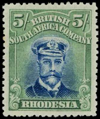 1922-4 5/- Head Die IIIB, perf 14, white paper. Large part o.g. example in deep blue and yellowish green, showing a slightly bluish frame shade. SG 307, AH 14a