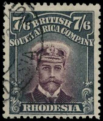1913-7 7/6d Head Die II, perf 14. Fine used example in (paler) deep dull purple and slate-black, fine; showing R1/6 'comet' flaw and extensive handpainting above King's cap. SG 240, AH 1(B)