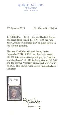 1913-7 7/6d Head Die II, perf 14, from Plate 3 State 2. Large part o.g. example in blackish purple and (intense) deep blue-black, Variant 'D' ('Extremely Rare'). Gibbs Certificate (2013). SG 240 group, AH 2(D)
