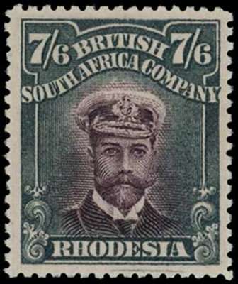 1913-7 7/6d Head Die II, perf 15. Large part o.g. example in brownish (deeper) dull purple and (indigo) blue-black. SG 252, AH 3(B)