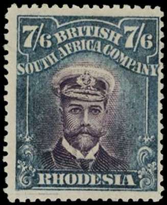 1913-7 7/6d Head Die II, perf 15. Part o.g. example in blackish purple and deep blue-black, fuzzy scrolls, hinge remainder. SG 252, AH 3(C)