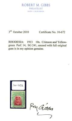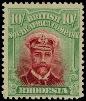 1913-7 10/- Head Die II, perf 14. Unmounted o.g. example in deep rose-red and light green. Pinkish blur on reverse, as described in the Handbook. Gibbs Certificate (2010). SG 241, AH 1(B)