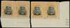 1913-17 3d Head Die II, perf 14. Lower marginal pair (folded between, the right stamp with part imprint, large part o.g.; and lower right corner pair with sheet number 439, unmounted o.g., each in grey-black and pale orange, Plate 3/State 3. SG 223, AH 5(B)