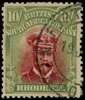 1917-20 10/- Head Die IIIA, perf 14. Fine used example in carmine-lake and yellow-green, part Fort Jameson CDS. Uneven perfs at left, at least in part due to the vagaries of the perforator used for this printing. SG 255q, AH 4(A)