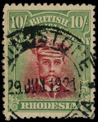 1917-20 10/- Head Die IIIA, perf 14. Fine used example with part Livingstone CDS of 29 JUN 21. SG 255q, AH 5(B)