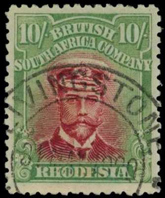 1917-20 10/- Head Die IIIA, perf 14. Fine used example in deep rose-red with light green frame, Livingstone CDS of 31 MAR 20. Ex Strong. SG 255q, AH 5(C)