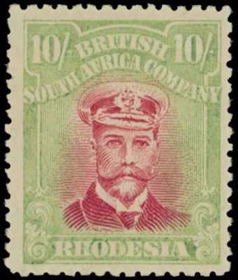1922-4 10/- Head Die IIIB, perf 14. Large part o.g. example in bright crimson and bright yellow-green, lightly-inked portrait, gum quite brown but acceptable for this printing. SG 309a, AH 9(B)