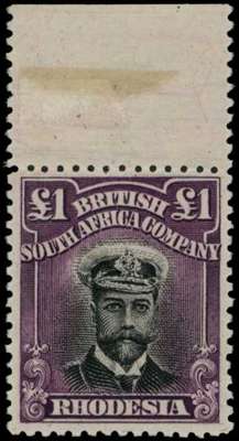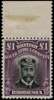 1913-7 £1 Head Die II, perf 14. Top marginal o.g. example in (brownish) black and deep reddish purple, fine with the stamp unmounted, R1/7 'comet' flaw. SG 242, AH 1