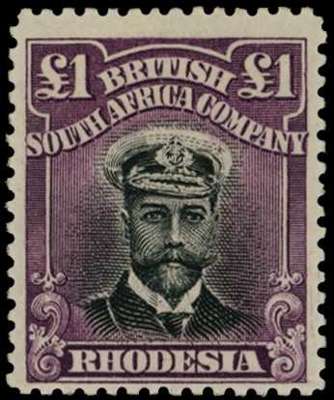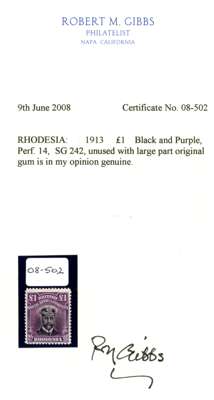 1913-7 £1 Head Die II, perf 14. Large part o.g. example in (brownish) black and deep reddish purple, fine, Gibbs Certificate (2008). SG 242, AH 1