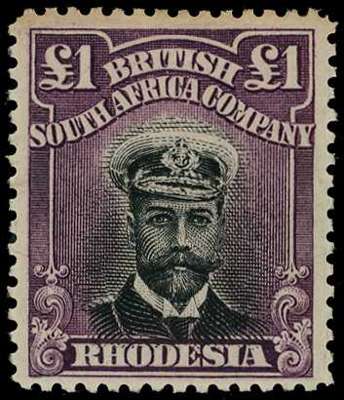 1913-7 £1 Head Die II, perf 14. Large part o.g. example, in (brownish) black and reddish purple, toned at top. SG 242, AH 1