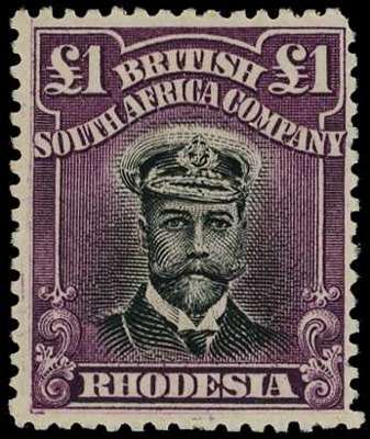 1913-7 £1 Head Die II, perf 14. Large part o.g. example, in (brownish) black and reddish purple, fine apart from the top right corner being slightly rounded. SG 242, AH 1