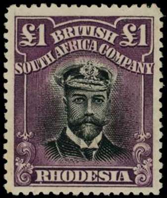 1913-7 £1 Head Die II, perf 15. Large part o.g. example in (brownish) black and deep reddish purple. Some faint foxing on reverse, not affecting the fine appearance of this very scarce stamp. SG 254, AH 2