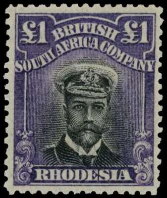 1913-7 £1 Head Die II, perf 14. Large part o.g. example in (deeper) grey-black and deep lilac, fine. Very scarce. SG 243, AH 6