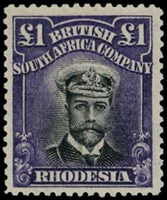 1913-7 £1 Head Die II, perf 14. Large part o.g. example in greyish black and blackish lilac, from R5/8 with corrosion flaw in cap at right, fine. SG 243, AH 7
