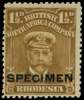 Rhodesia 1917 1½d overprinted SPECIMEN Type W3 with...