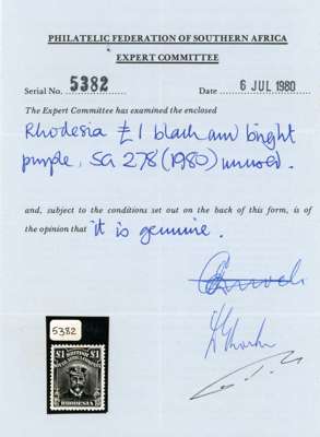 1918-21 £1 Head Die IIIB, perf 14, toned paper. Large part o.g. example in greyish black and deep reddish purple, fine. PFSA Certificate (1980). SG 278, AH 15(A)
