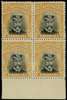 1918-21 3d Head Die IIIB, perf 14, toned paper. Lower marginal block of four in grey-black and (brownish) dull orange, with large part o.g. SG 260, AH 13