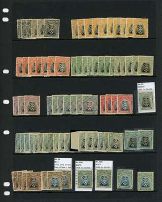 1918-21 Admirals 2d to 5/- Head Die IIIB duplicated range on Hagner sheet with 2d (6), 3d (11), 4d (7), 5d (13), 6d (3), 8d (7), 10d (4), 1/- (18), 2/- (5), 2/6d (2) and 5/- (4). Condition a bit mixed in places, but most are sound or better, well above average for this type of group, minimum catalogue value £2261