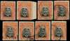 1913-7 4d Head Die I, perf 15. Two fine o.g. examples and six used, some shade variation. SG 216, AH 1b
