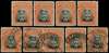 1913-7 4d Head Die II, perf 14. Three o.g. examples in grey-black and brownish orange, and six used including a pair. SG 224, AH 2a
