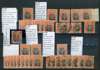 1918-21 4d Head Die IIIB, perf 14, toned paper. Range of twenty-five o.g. examples in slate-black and orange-red (from both Handbook shade groups) with some unmounted, three with printer's marks and one with R2/7 chopsticks flaw. Also twelve used examples. Shades throughout. SG 262, AH 9(A+B)