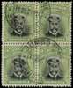 1913-7 5d Head Die II, perf 14. Block of four in black and dull blue-green, fine used with Jumbo Mine CDSs of 11 DEC 14. SG 226a, AH 5(B)