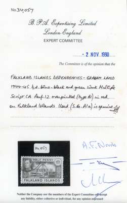 Graham Land. 1944 ½d blue-black and green, fine used. BPA Certificate (1990). SG A1a, £1200