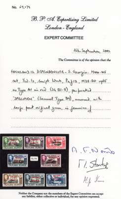 South Georgia. 1944 set perforated SPECIMEN Type B9, large part o.g., fine. BPA Certificate (2002). SG B1s-8s, £650