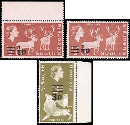 South Georgia SG 53w, 58w ½p and 3p inverted watermarks mint
