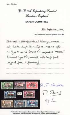 South Orkneys. 1944 set perforated SPECIMEN Type B9, large part o.g., fine. BPA Certificate (2002). SG C1s-8s, £650