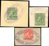South Shetlands. 1918-28 three items on separate pieces with the violet oval Deception Island cancels. ½d War Stamp, fine full strike of 6 JAN 23; 1d War Stamp, full strike 28 DEC 21; ½d Script, large part strike of 16 MY 27, the latest recorded date, the piece with a small foxed spot just above the stamp. SG Z120-1, 123, £600