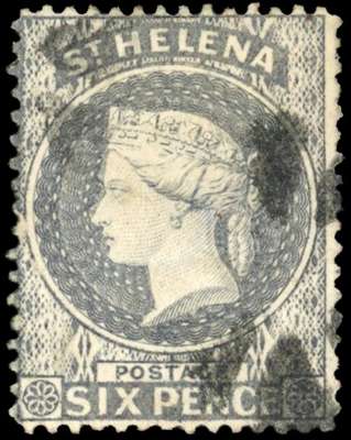 St Helena SG 29x 1880 6d milky blue watermark reversed used
