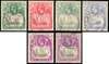 1922 Script watermark values with R4/6 torn flag, all used. 1d, 1½d, 2d (short perf at upper left), 3d, 6d and 8d. Fine. SG 98b/104b, £1925